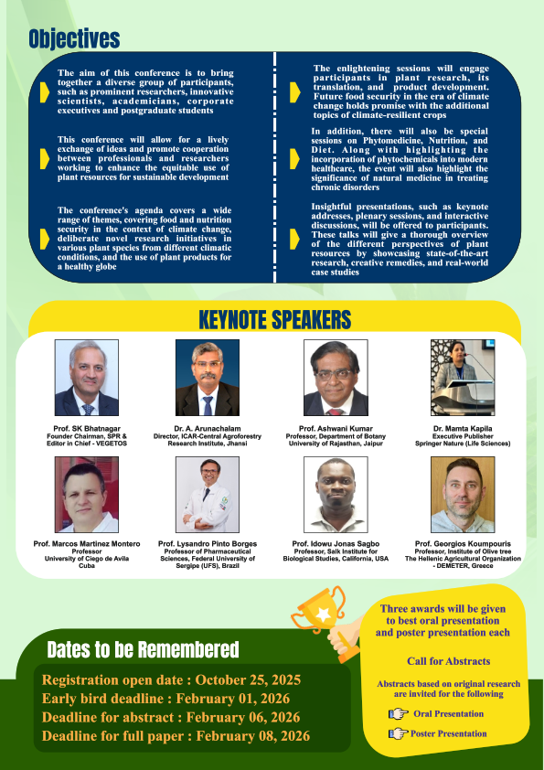 - The event will offer participants insightful presentations, including keynote addresses, plenary sessions, and interactive discussions. By showcasing state-of-the-art research, creative remedies, and real-world case studies, these talks will provide a thorough overview of the various perspectives of plant resources.